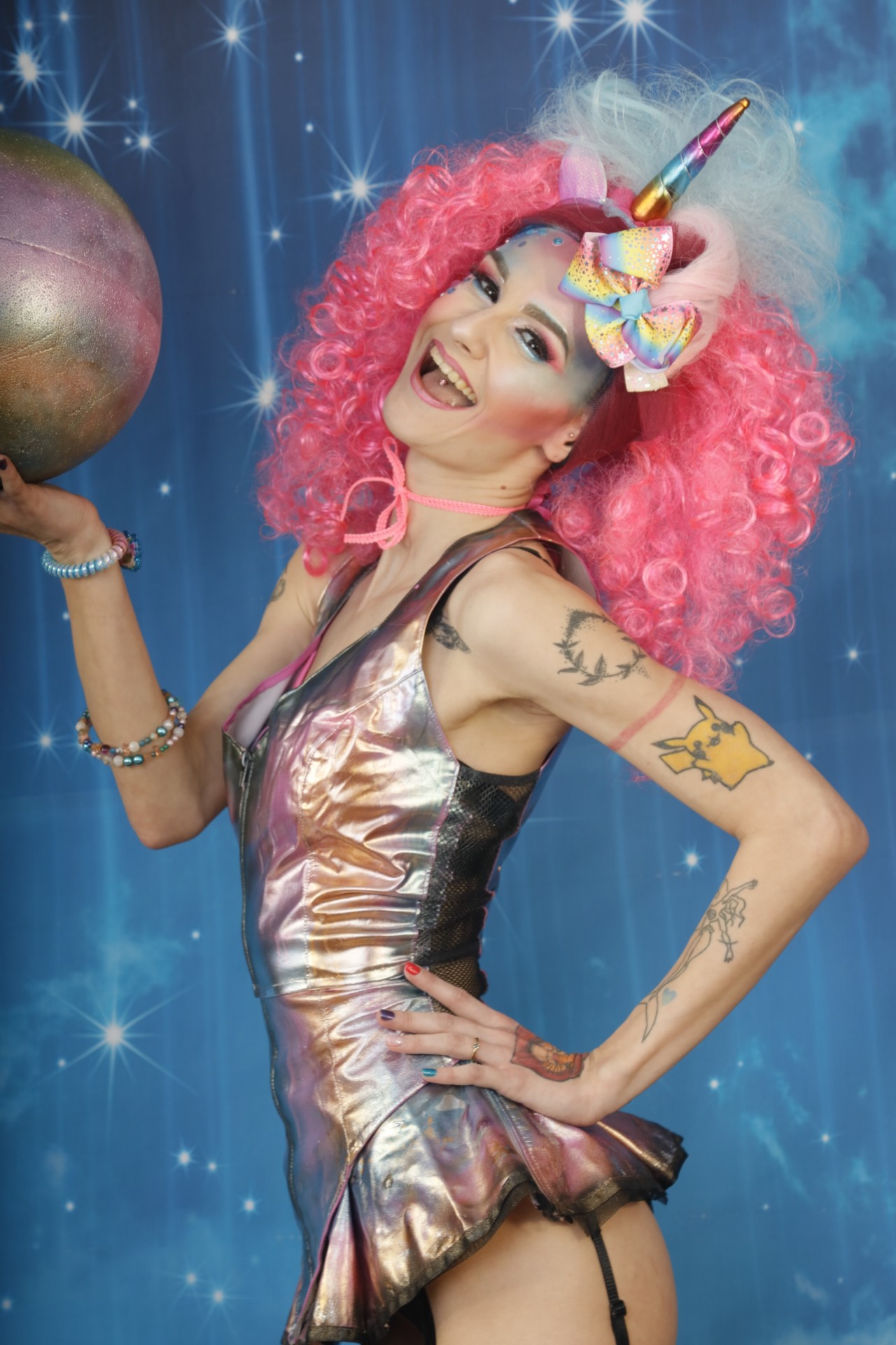 By the end of the shoot, it was clear that Adelle Unicorn was much more than just a guitarist. She was a true artist, effortlessly combining her musical talent, fashion sense, and playful spirit to create a truly unforgettable experience. And as she left the studio, her rainbow hair still bouncing, she left behind a trail of inspiration and joy, reminding everyone that music is not just about skill, but also about passion and personality.